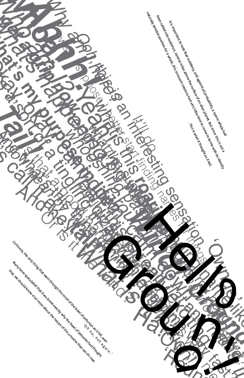 A poster that defies any form of grid-based design using the whale monologue from The Hitchhiker's Guide to the Galaxy. I wanted to convey how grand and overwhelming the experience would be for the whale, and how mundane it would be for the flowers.